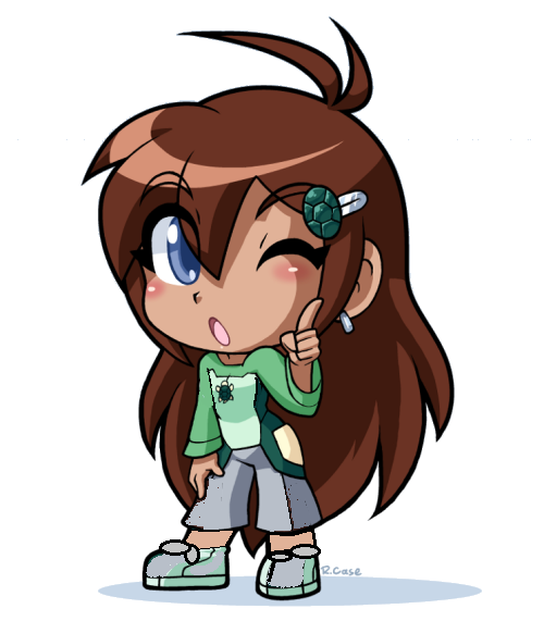 Ruby, ever the adventurer, steps curiously into the clearing and sees the monster close up.  Sure enough, it really is smiling and it's got something in its little hands; it's a strawberry!  Ruby loves strawberries, of course, and the monster cheerfully gives it to her, a friendship gift.